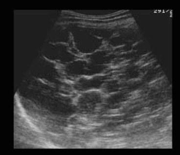 - (초기) 명확하지 않은 경계로 내부에코는 저에코이며 작은 사이즈의 다발성으로 나타난다.