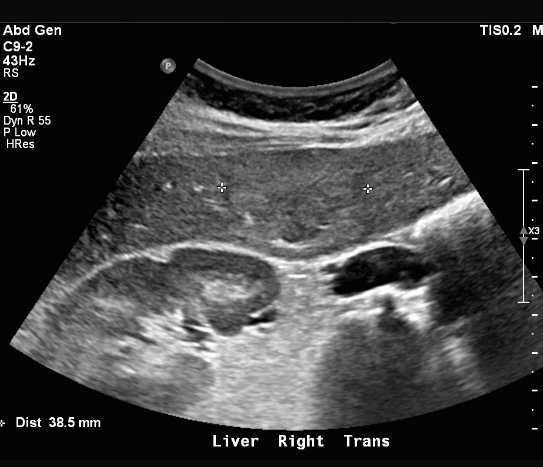 위에서 보인 초음파소견처럼 FNH는 경계가 명확한 균일한 종괴이며 내부에 섬유성 반흔이 있다. 에코는 저에코를 갖지만 간혹 고에코나 등에코등 다양하게 나타날 수 있으며 피막이 없다. 도플러상 과혈관성을 보이며 정상 간세포조직을 갖는다. 초음파 만으로 간암과 구별할 수 없으므로 혈액검사, CT 와같이 다양한 검사를 통한 진단이 필요하다.