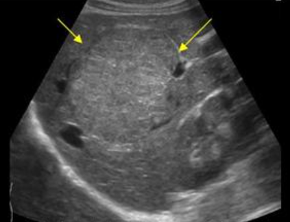위에서 보인 초음파소견처럼 FNH는 경계가 명확한 균일한 종괴이며 내부에 섬유성 반흔이 있다. 에코는 저에코를 갖지만 간혹 고에코나 등에코등 다양하게 나타날 수 있으며 피막이 없다. 도플러상 과혈관성을 보이며 정상 간세포조직을 갖는다. 초음파 만으로 간암과 구별할 수 없으므로 혈액검사, CT 와같이 다양한 검사를 통한 진단이 필요하다.